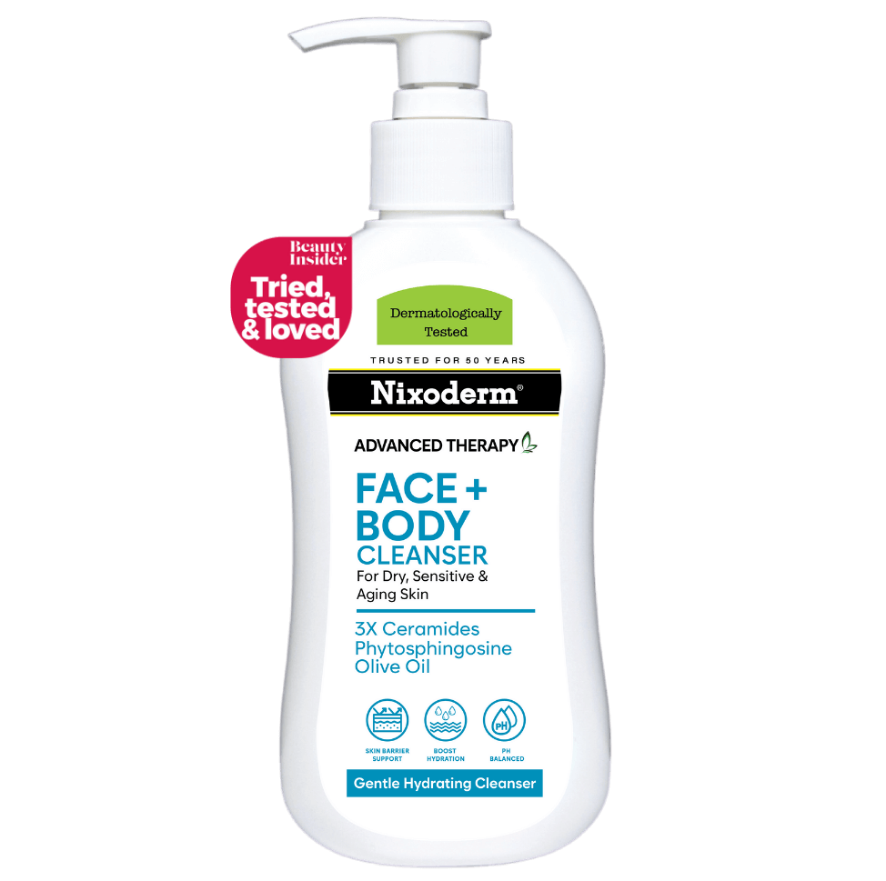 Nixoderm Face & Body Cleanser is a mild, non-irritating and pH-Balanced cleanser designed for dry and sensitive skin. This cleanser able to gently cleanses, hydrates and protects the skin. It contains ceramides which help restore skin’s natural protective barrier, protects skin from external irritant and keeps the skin hydrated and elastic. Vitamin E and olive oil act as antioxidants that protect the skin against free radical damage.